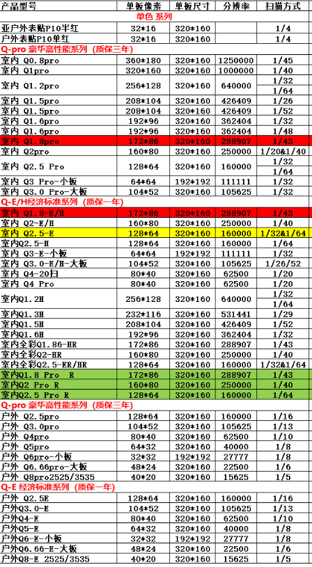 led顯示屏參數(shù)規(guī)格尺寸對(duì)照表