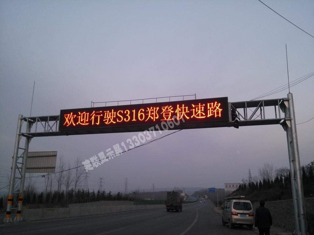 安裝在高速公路車道的上方,由控制中心控制,以便在交通狀況、天氣狀況等出現(xiàn)異常時(shí)及時(shí)提醒駕駛員,配合交通監(jiān)控系統(tǒng)對(duì)交通流量進(jìn)行誘導(dǎo)和控制,并可顯示宣傳標(biāo)語、口號(hào)、廣告等。